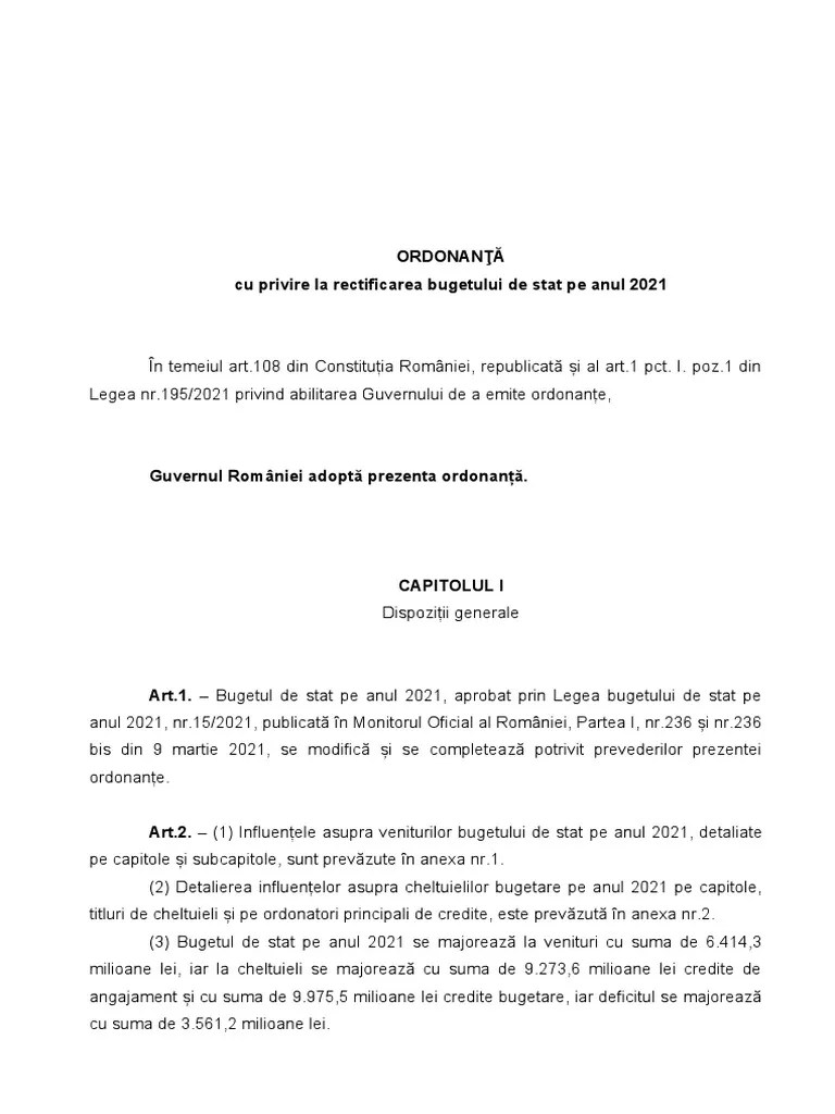 992 din 17 septembrie 2021 referitoare la hotărârea guvernului nr.. Sunt câteva modificări importante, față de ultima variantă a proiectului:. Rectificare bugetara ca raspuns la coronavirus.